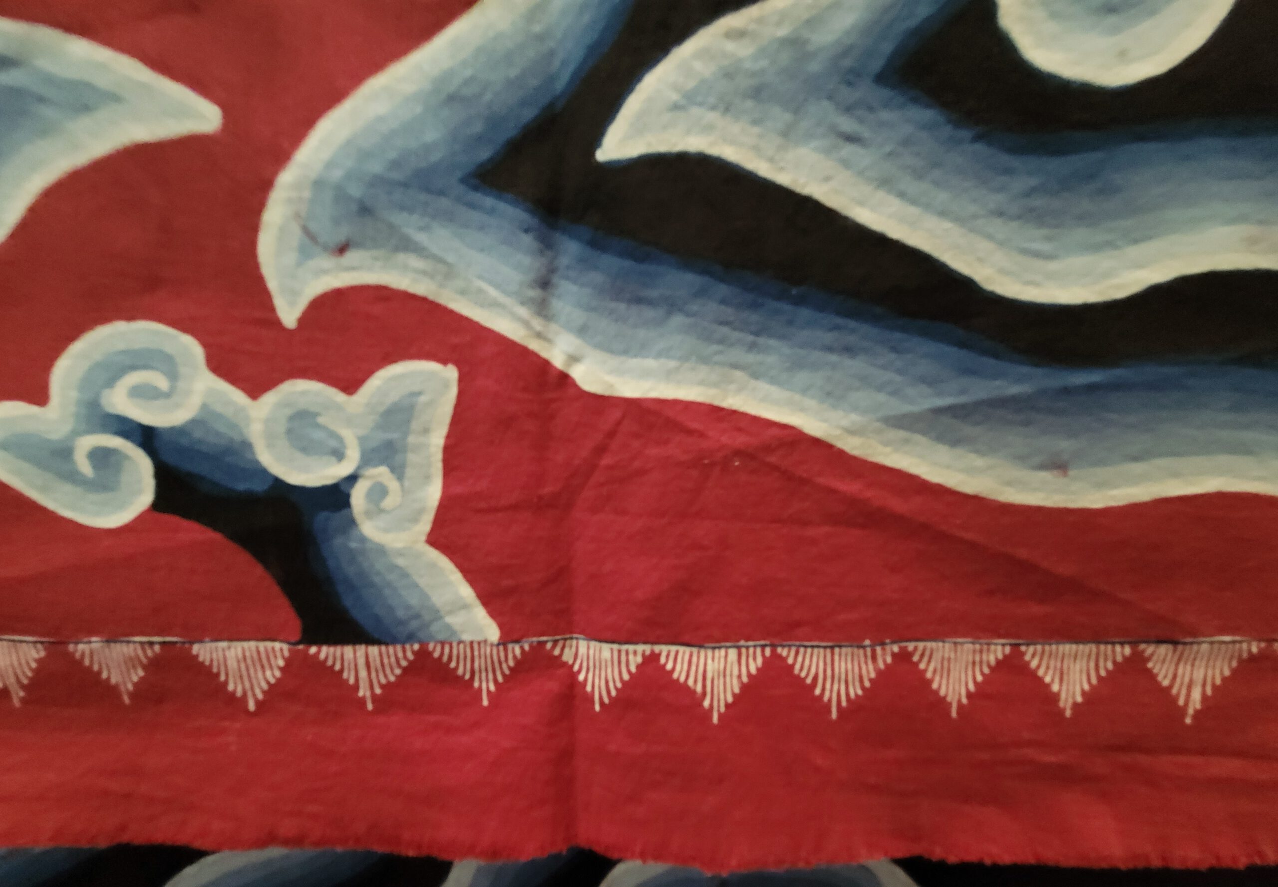 Info: This textile represents the belief sytem of the Iban tribes on Borneo. They believe that the Pua cloths convey unique spiritual powers in the service of their owners. The geometrically abstract patterns of Puas are always in earth tones.